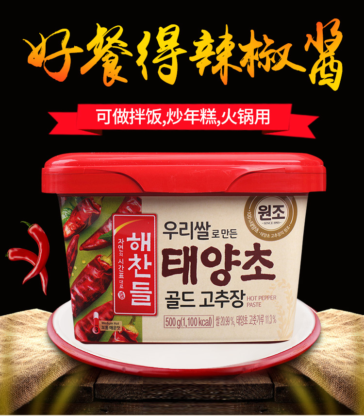 Korean food is sun pepper chili sauce Korean bibimbap, barbecue sauce, hot pot fried rice cakes