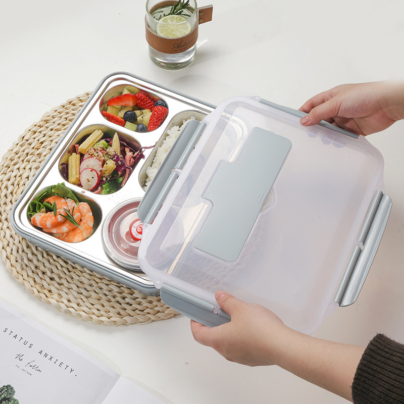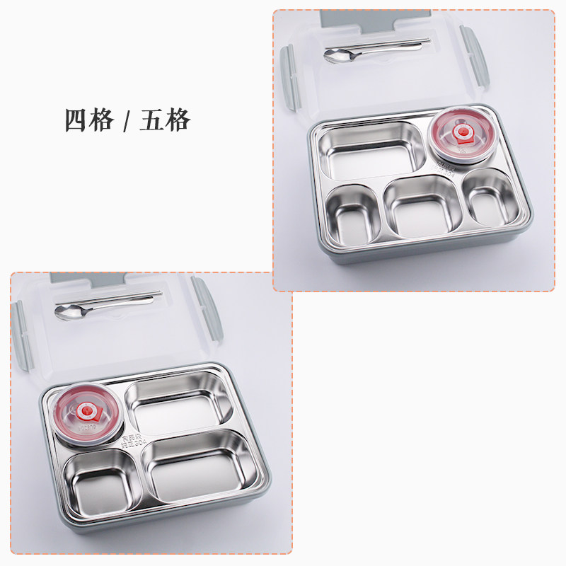 Japanese style 304 stainless steel insulated lunch box Lunch box Adult large capacity student fast food plate grid with lid four grid