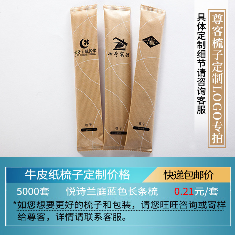 (100pcs) kraft paper blue strip comb (500 pcs) kraft paper blue strip comb (2000 pcs) kraft paper blue strip comb guest comb custom LOGO appreciation