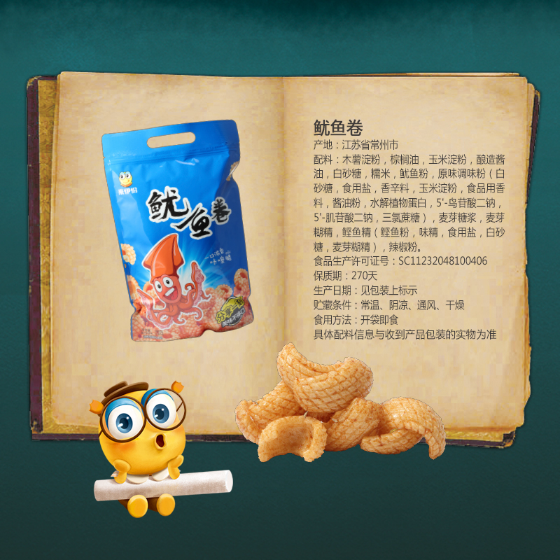 Laiyifen squid roll 188g puffed food office leisure big bag leisure snack net red Laiyifen