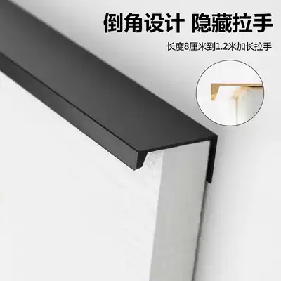 Lengthened black simple invisible overall cabinet wardrobe door edge banding handle Light luxury word shoe cabinet drawer door golden handle