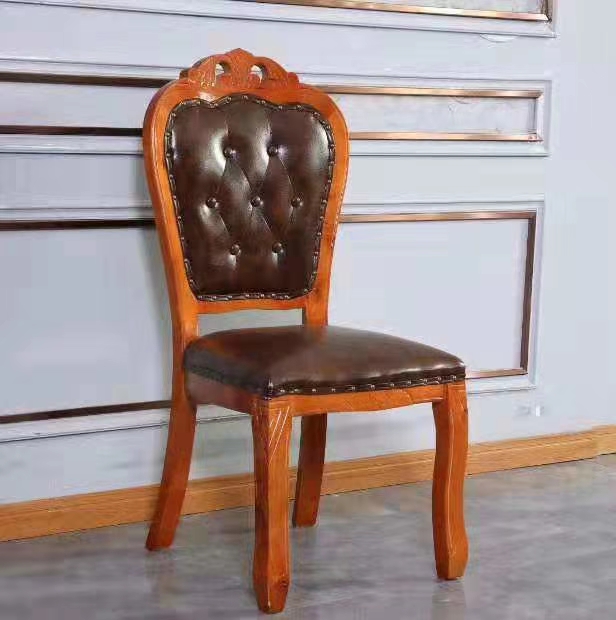 Hotel Au Style Dining Chair Solid Wood Carved Backrest Dining Chair Chinese Clubhouse Leather Art Hotel Soft Bag Chair Hot Pot Bag Room Chair
