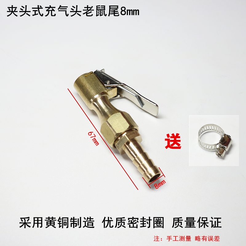 Tire valve nozzle inflatable chuck Pure copper chuck type pneumatic nozzle Tire pressure gauge hose adapter 6mm8mm