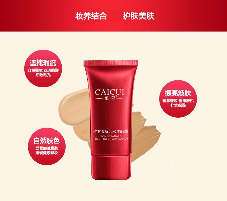 Red Pomegranate BB Cream Flawless Nourishes Cover Color Spotted with invisible pores moisturizing Tibright and persistent without makeup