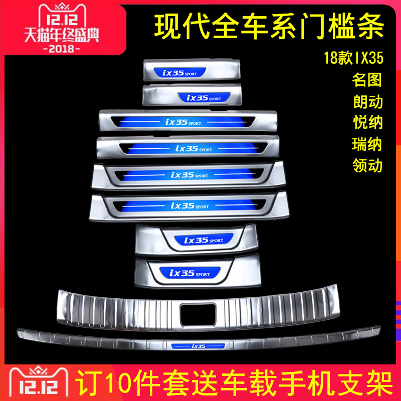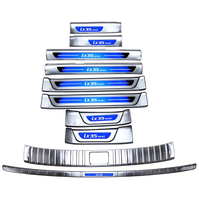 8 pieces of silver door sill strips, blue outer guard plate, 4 pieces of silver built-in door sill strips, remarked models, 18-19 models IX35, 8 pieces of inner and outer door sills, extended blue label, 17 and previous IX35