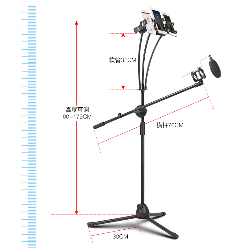 Package One-cell phone bracket package Two-cell phone holder microphone bracket package Three-double mobile phone holder microphone bracket package Four single mobile phone single flat microphone bracket package five-three-phone