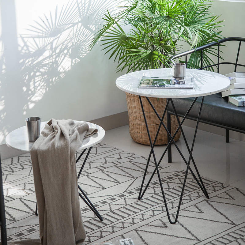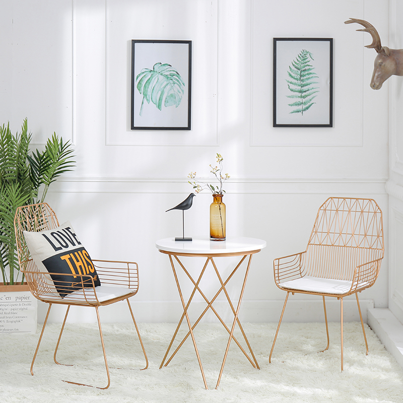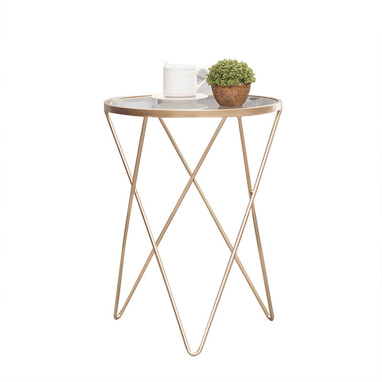 Iron coffee table marble small apartment mini solid wood small round table golden sofa side function