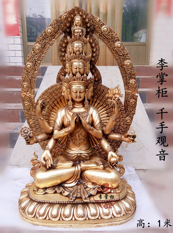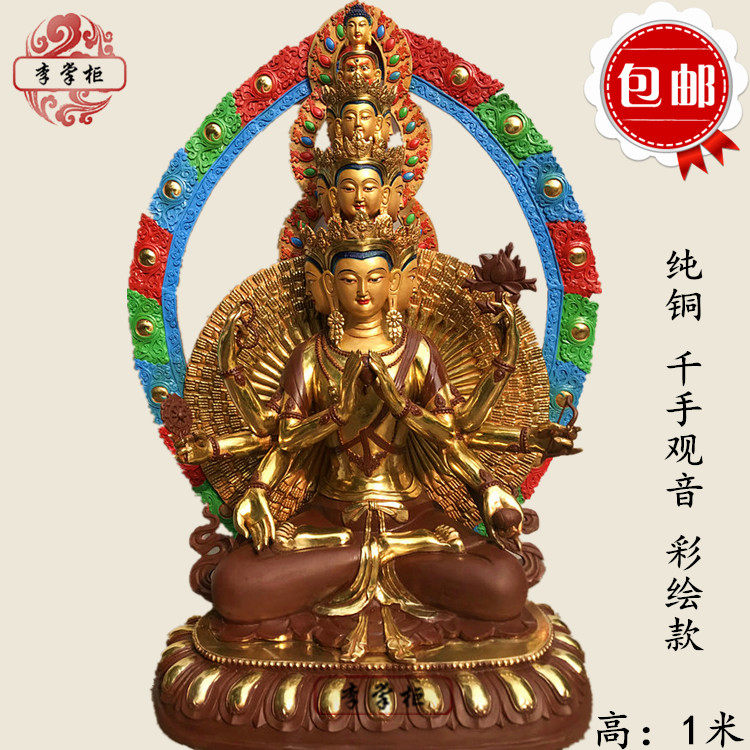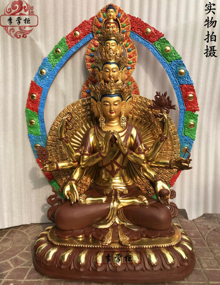 Shopkeeper Li Nepal Tibetan Tantric Buddhism painted gilt pure copper thousand-handed Guanyin Buddha statue Bodhisattva temple bronze sculpture