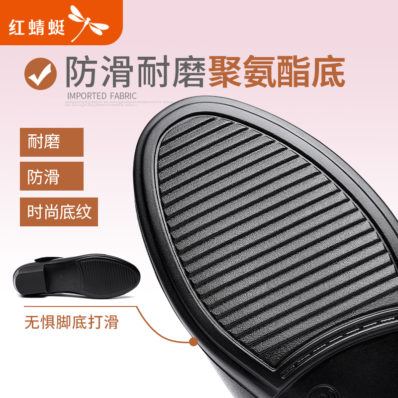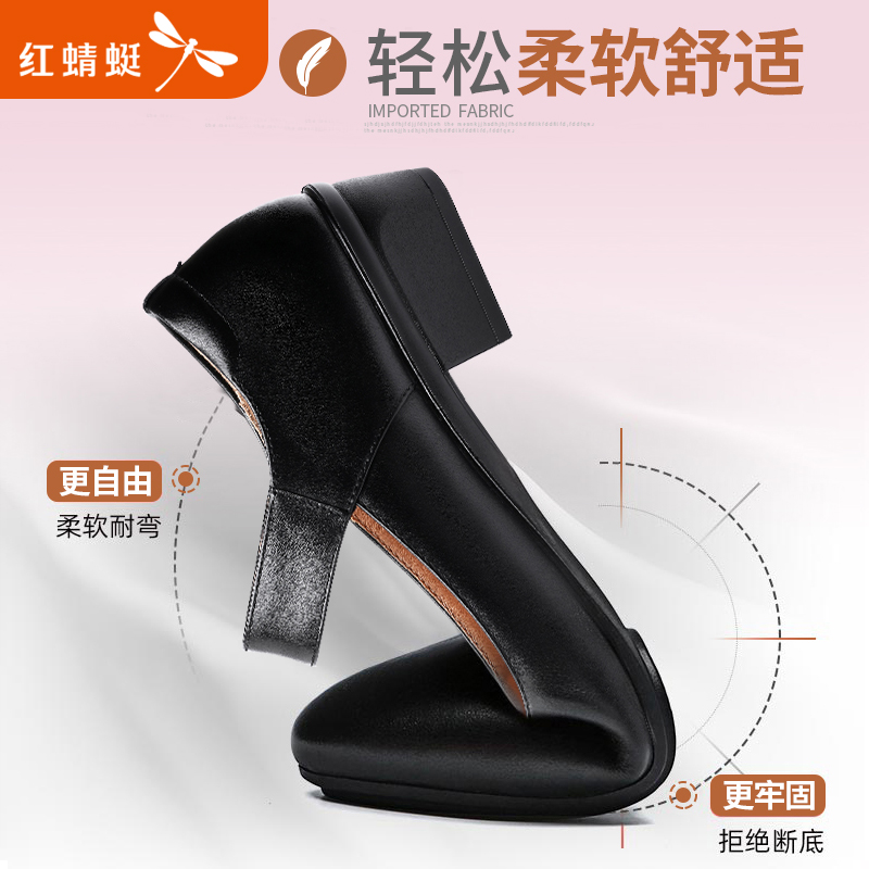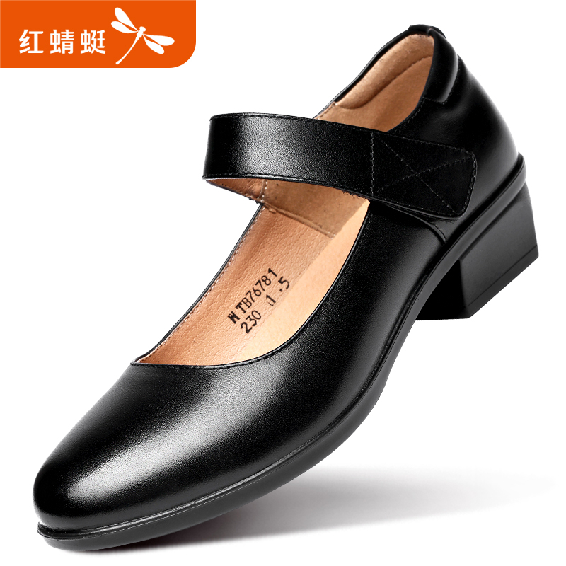 Red Dragonfly Genuine Leather Soft-bottom Single Shoes Woman 2022 Spring paragraph Soft Leather with Buttons Mother Women Shoes Magic Sticker Lady Leather Shoes
