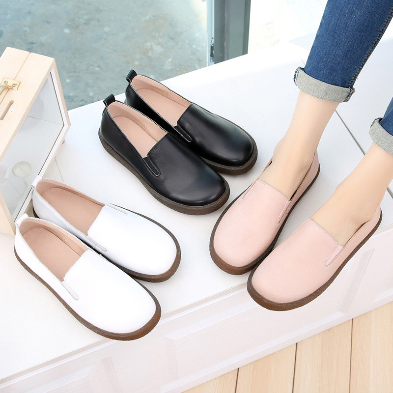 Spring women's shoes single shoes loafers flat all-match leather shoes 2022 new one pedal lazy casual white shoes