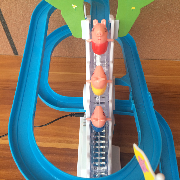 Pig Peggy climbing stairs toy children Peggy pig electric slide rail car on the stairs with lights boy