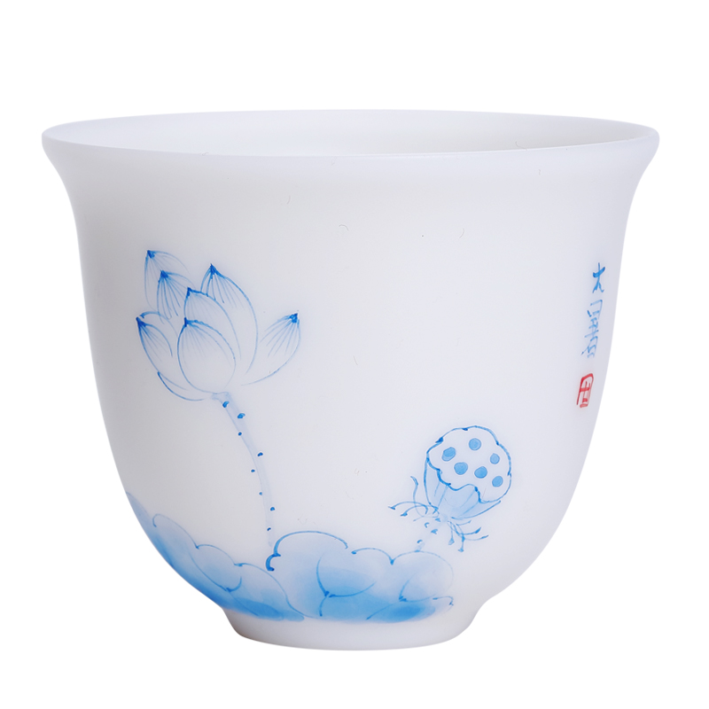 East Home Deed white Porcelain Kung Fu Tea With Pure Hand Painted Small Tea Cup Wine Tasting Cup Goat Fat Jade Porcelain Blue Color Ceramic Master's Cup