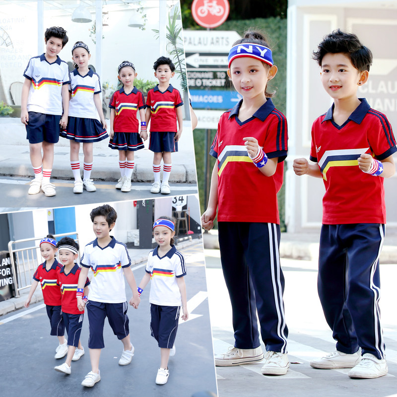 Summer junior high school students class uniform short sleeve cotton suit one two five six grade boys and girls games school uniform