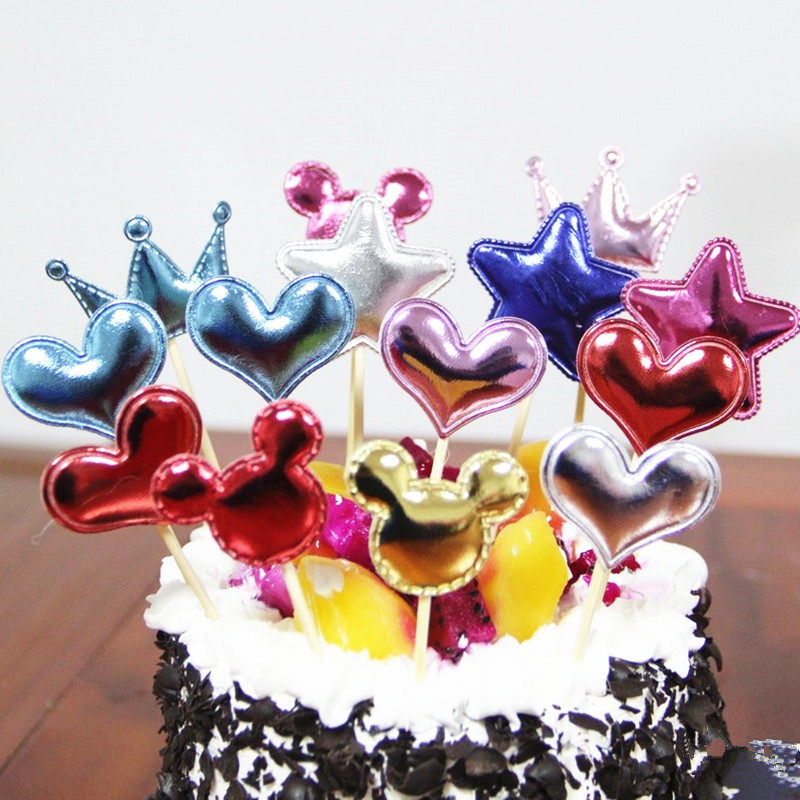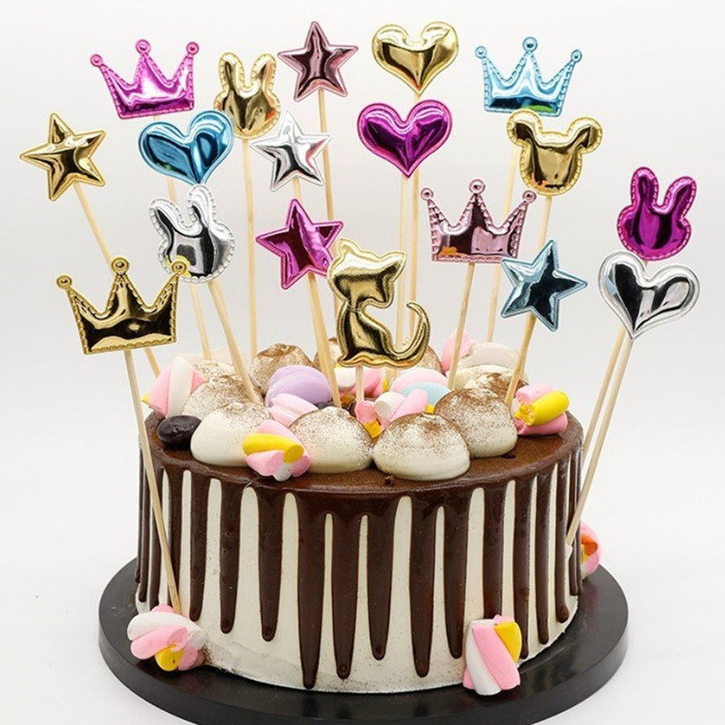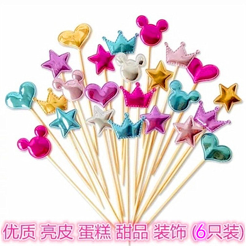 With Sparkling Pink Stars Loving Shiny Inserts Flag Inserts Birthday Cake Decoration Accessories 6 Fitting Inserts