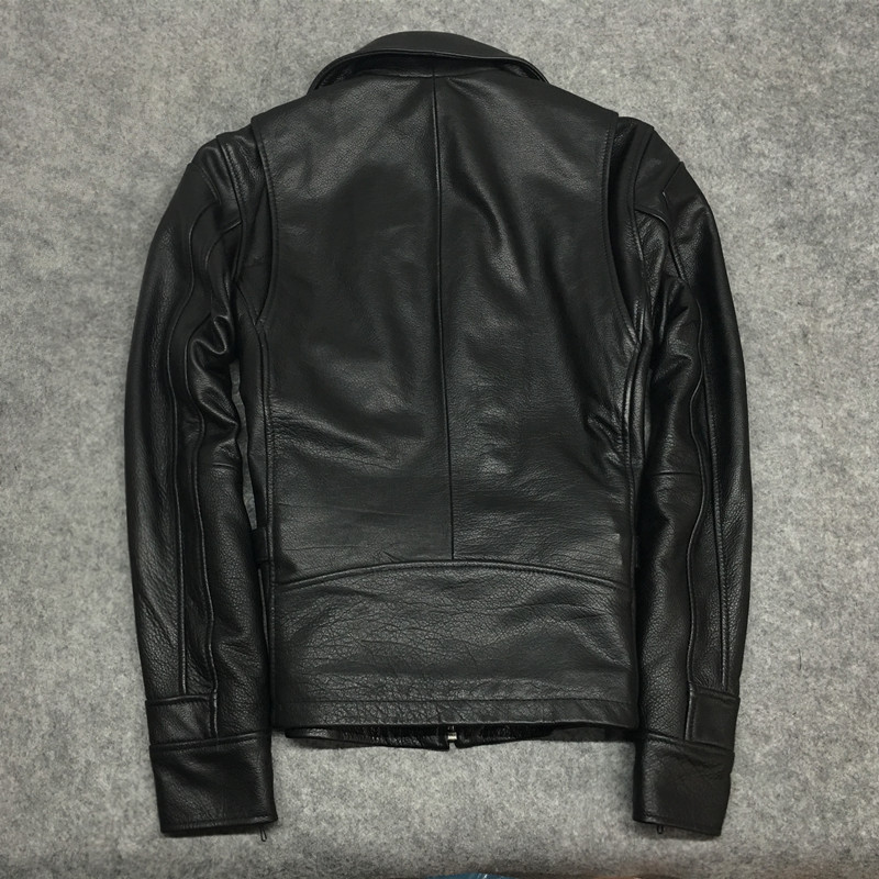Large size for spring and autumn models Genuine Leather Head Layer Bull Leather Stand-up Collar Short style Locomotive Suit Foreign Trade Men's Jacket Jacket Jacket male