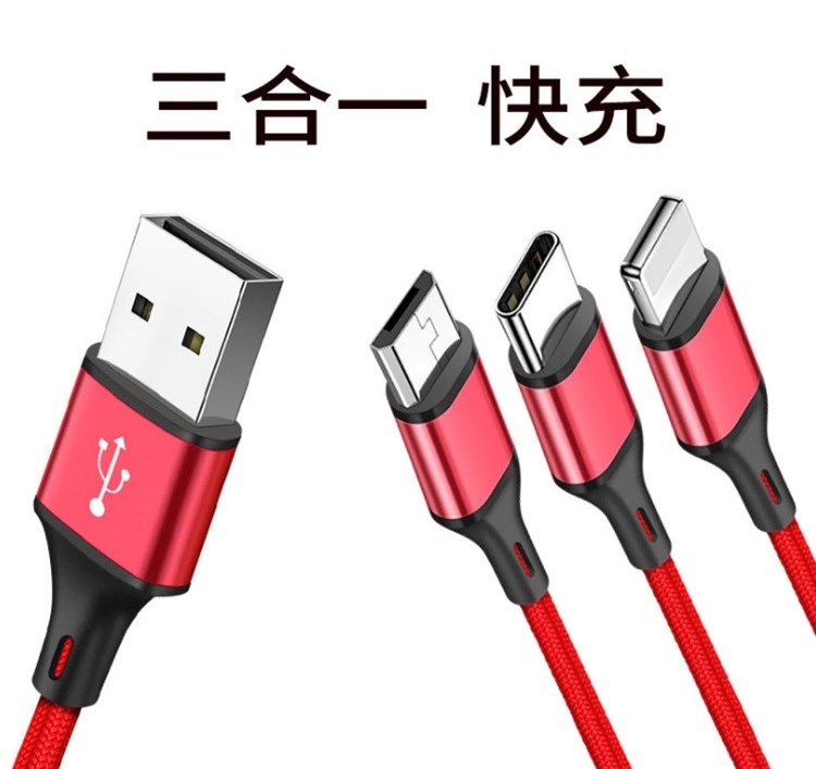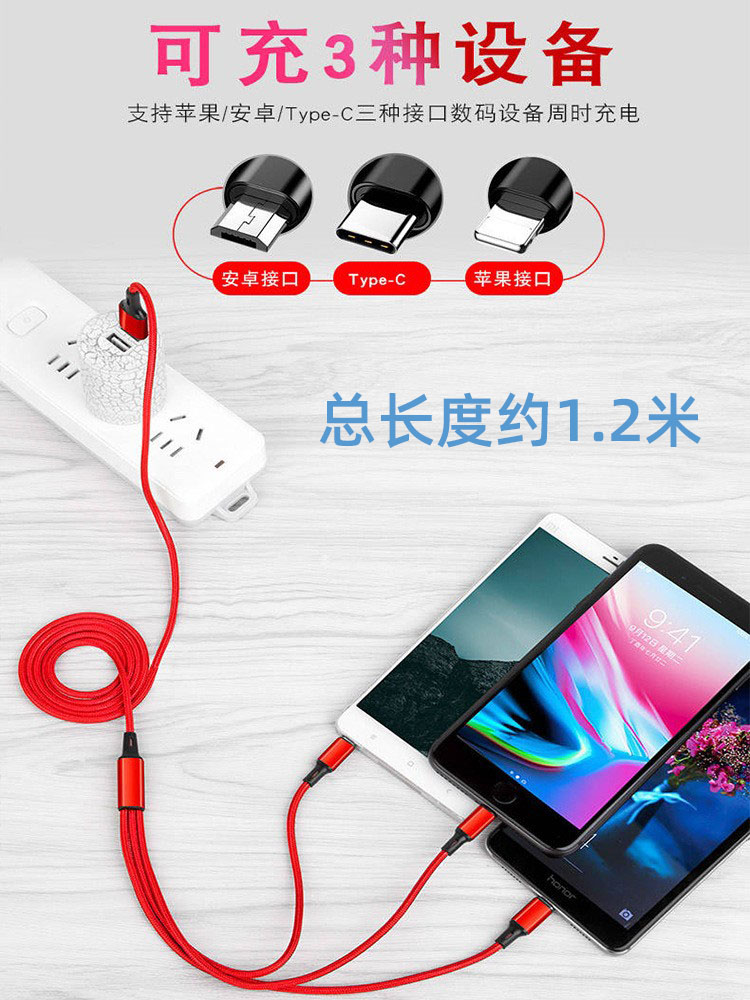 Three-in-one data cable for Apple Android Type-C one-point three-charging cable multi-function 3A fast charge