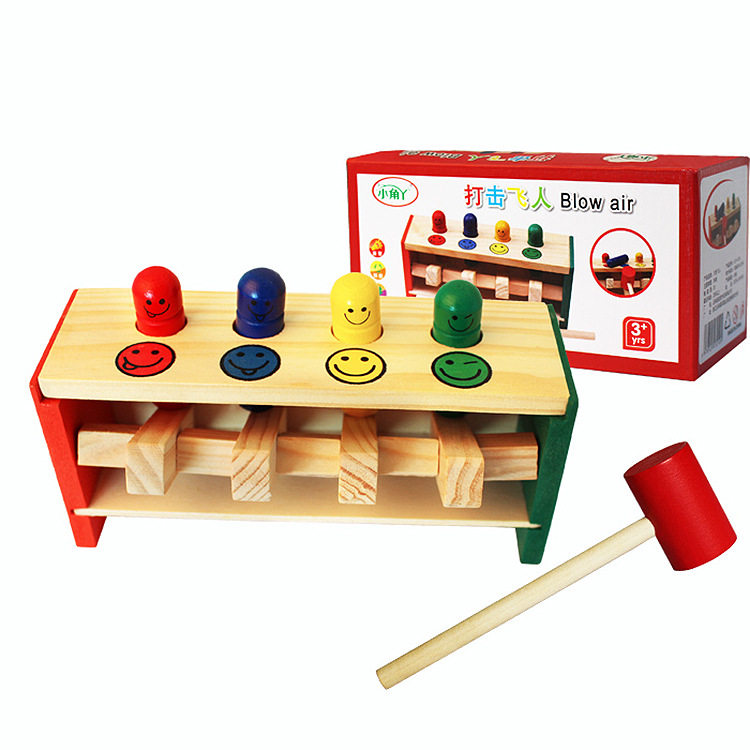 Children's wooden strike trapeze catapult toy 1-4 years old boy percussion gopher puzzle piling table knocking table