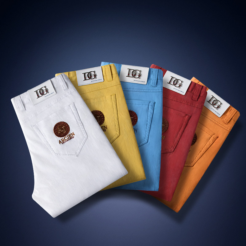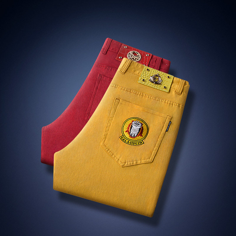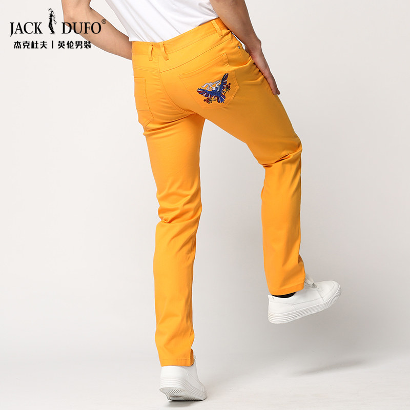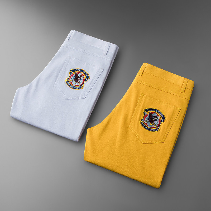 Fall White Jeans Men's Body Small Feet Men Color Casual Long Pants Embroidered Elastic Yellow Pants Male Tide Cards