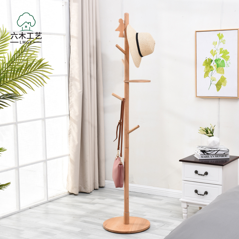 Hanging Hanger Ground Solid Wood Provincial Space Home Bedroom Door Hall Clothing Cap Rack Brief Modern Creative Standing Clothes Hanger