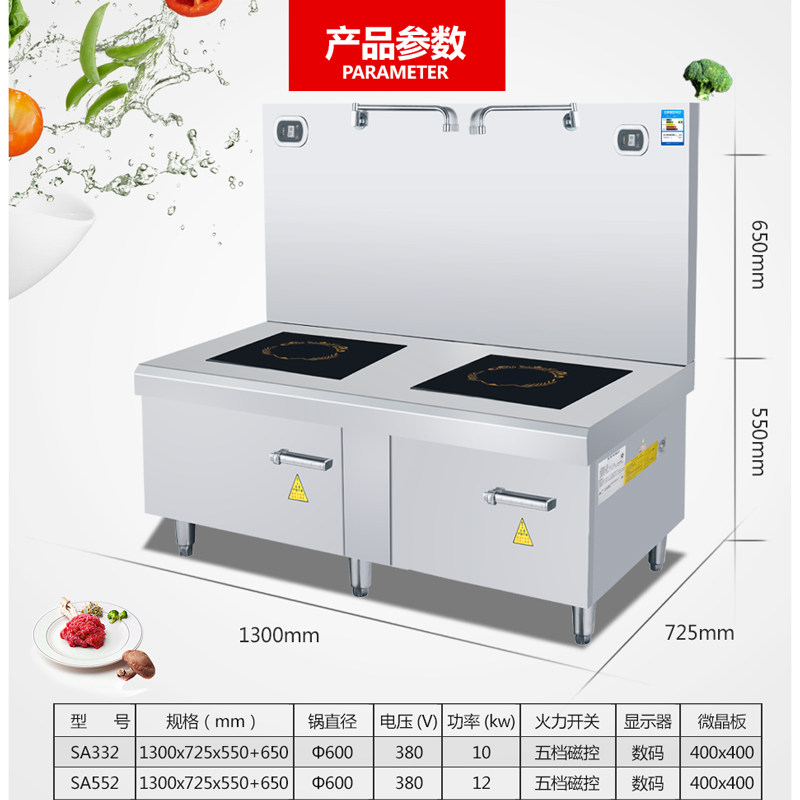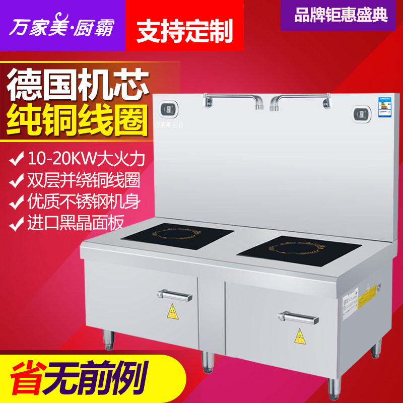 15KW short soup stove induction cooker commercial double-head plane high-power soup stove kitchen industrial stove Wanjiamei kitchen bully