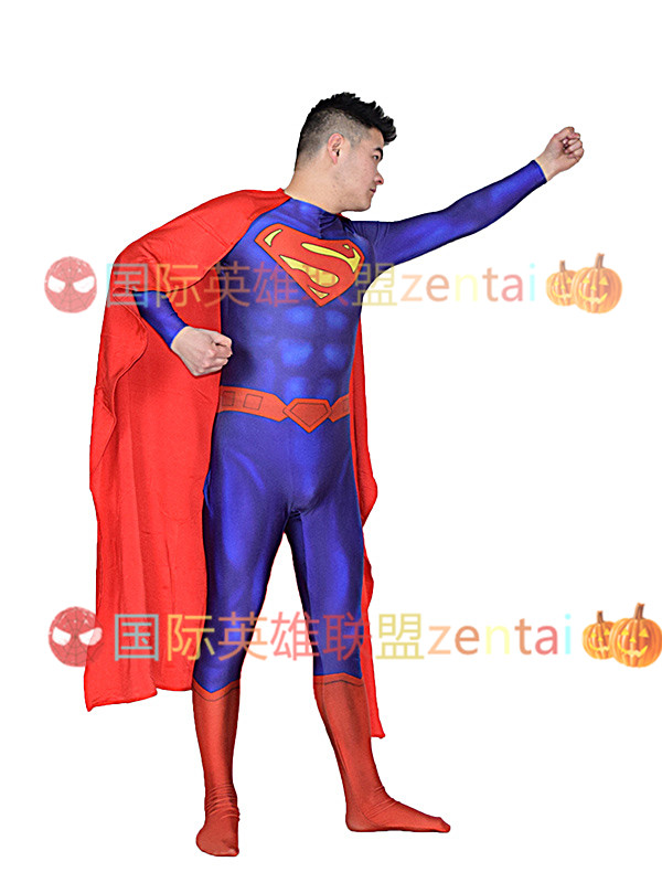 Blue Classic Superman Bodysuit Superman Superhero Halloween Party Zentai Suit