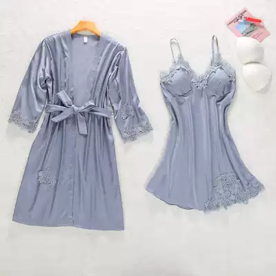 Bride's morning gown wedding makeup gowns ice silk pajamas women's summer sexy red silk nightgown bathrobe