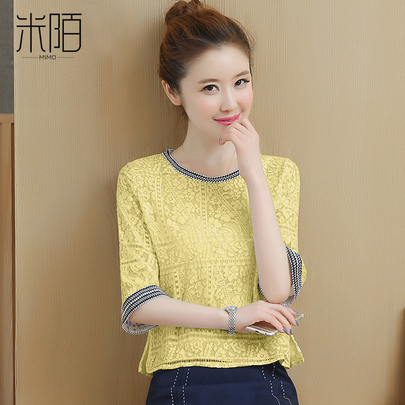 Three-point sleeve lace shirt women's summer 2021 new T-shirt design sense fashion short blouse Chiffon shirt
