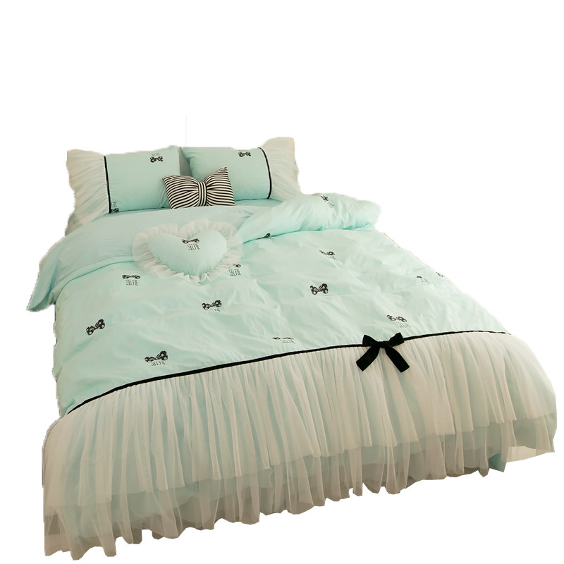 ins princess wind pure cotton four-piece bed dress full cotton lace side girl heart quilt cover 1 5m1 8 m bedding