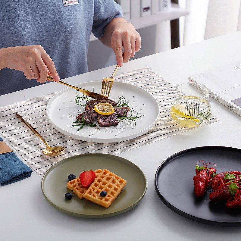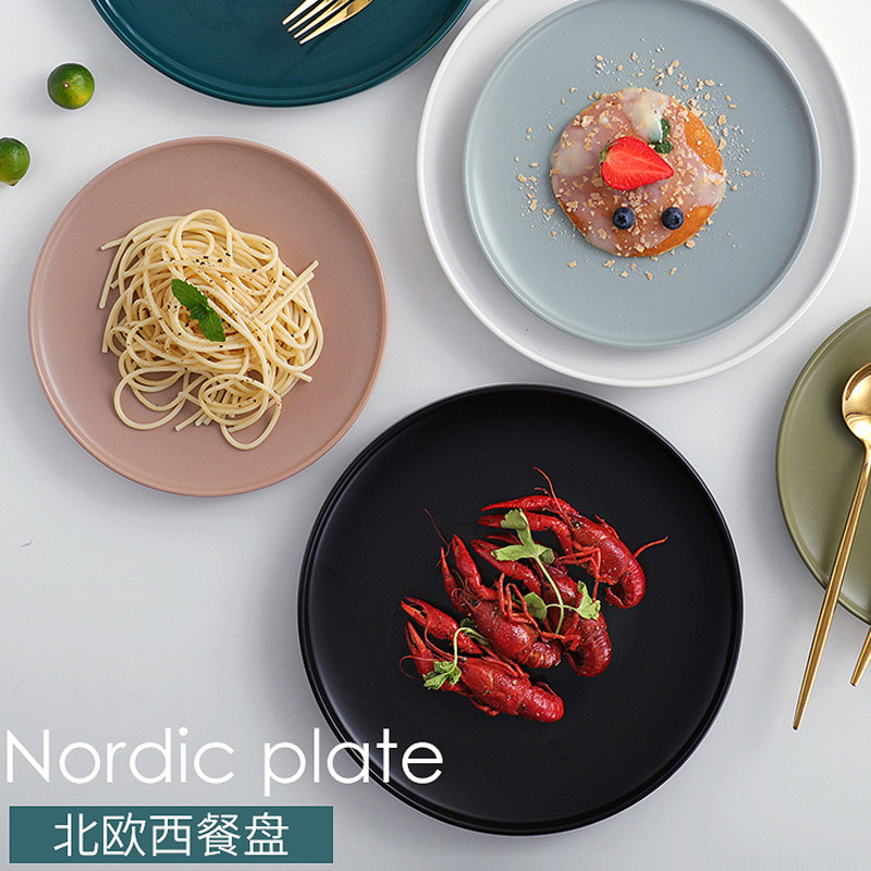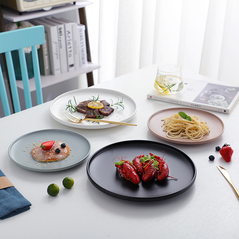 Ins salad plate home Nordic style shallow soup plate with edge shallow plate 8 inch matte simple flat plate breakfast plate