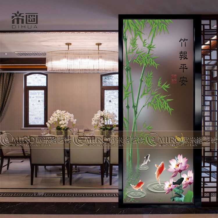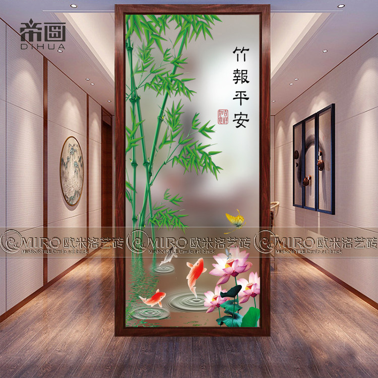 New Products Art Glass Partition Screen Entrance to the family Xuanguan Decorative Baking Varnish Background Wall Mobile Folding Screen Bamboo Newspaper Ping An