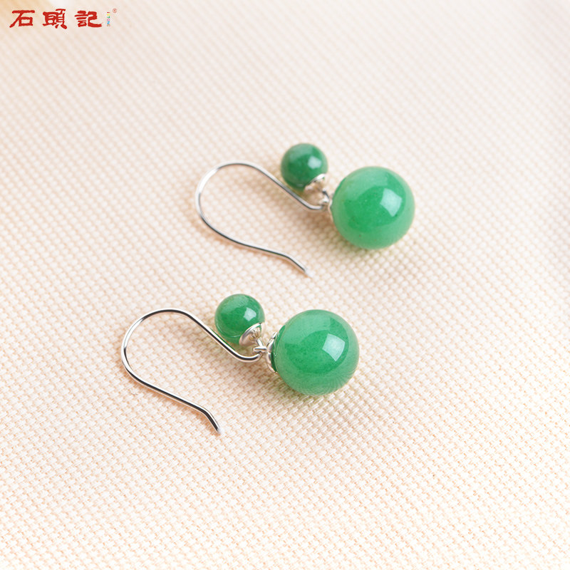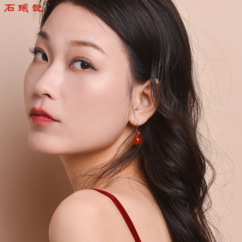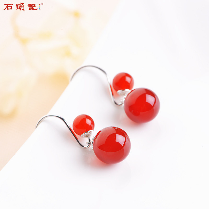 Stone book Tangling jade red agate Beijing white jade black agate earrings earrings temperament retro female