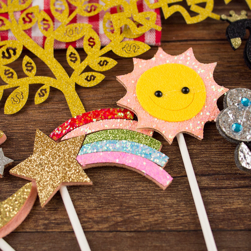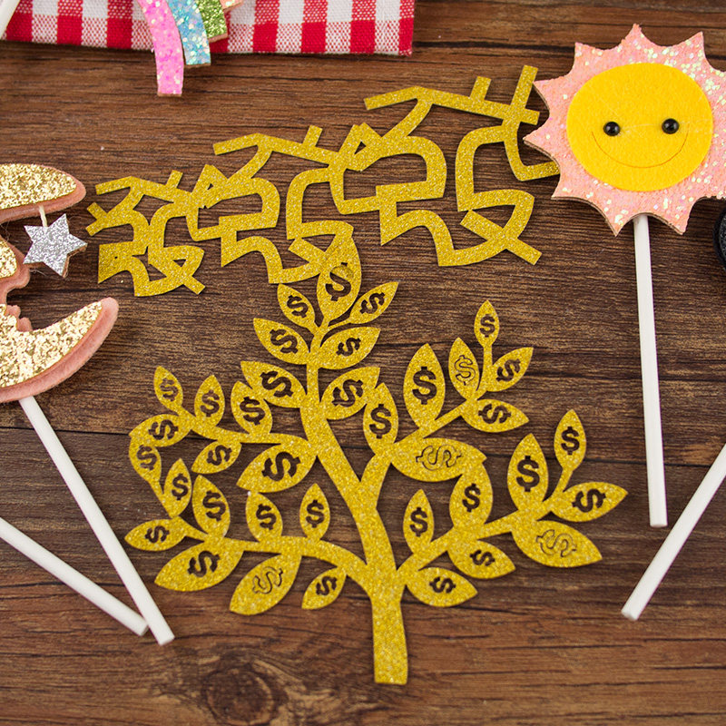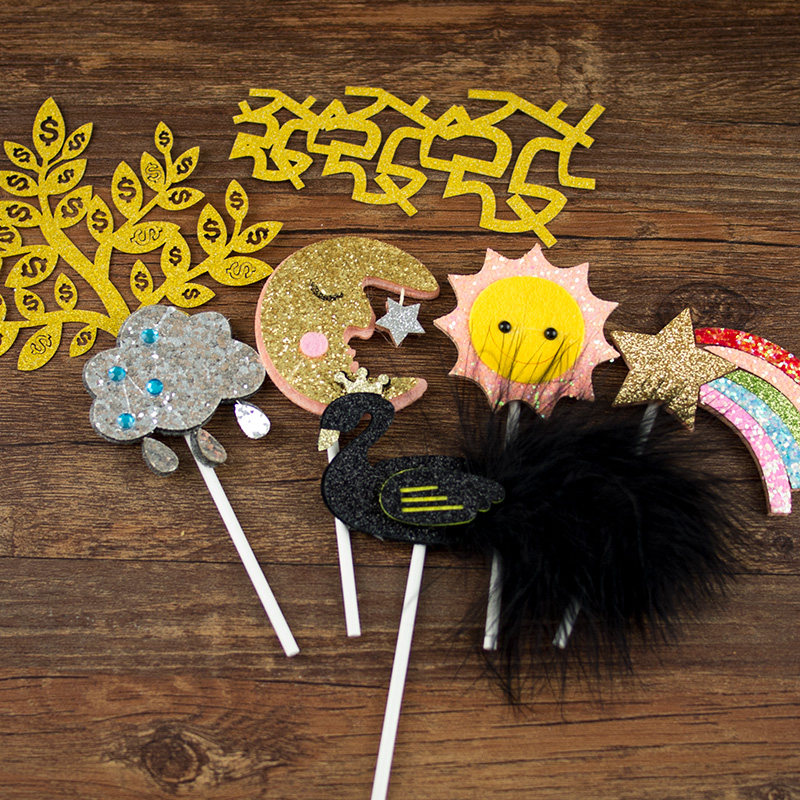 Cake decoration plug-ins insert row moneymaker Moon stars Sun clouds Black Swan Birthday party decoration