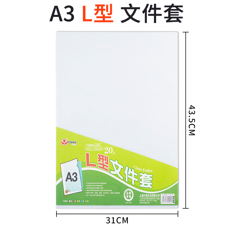 Rich fast A3 two-page file bag single-piece clip thickened L-shaped transparent waterproof file protective sleeve insert 8K picture clip