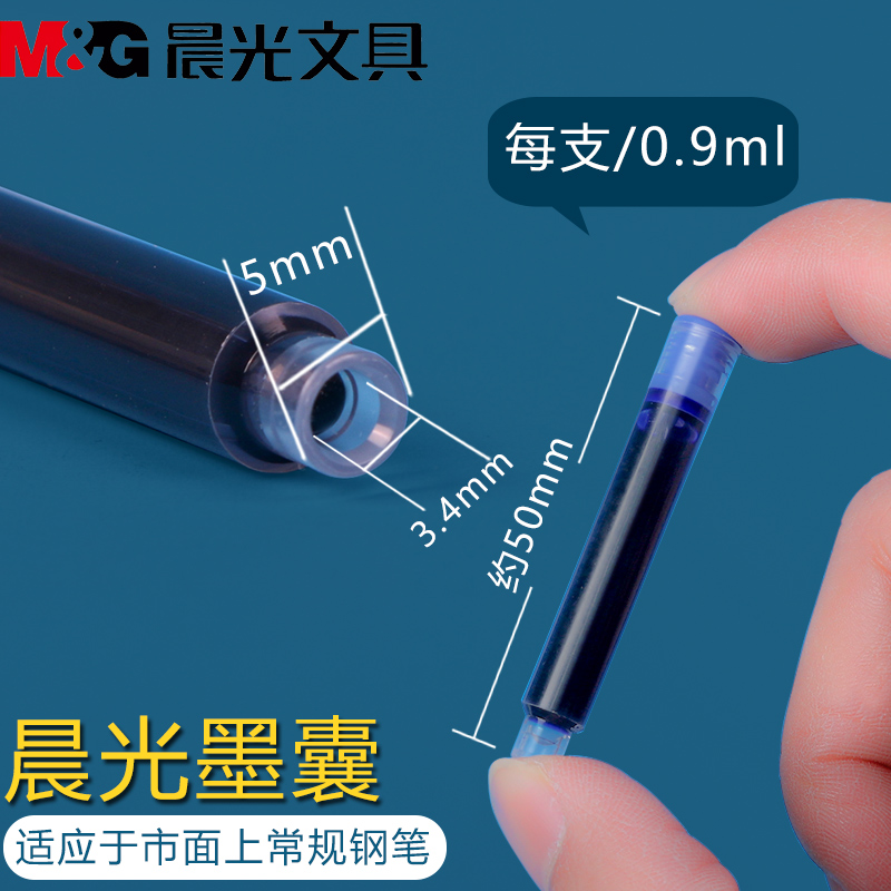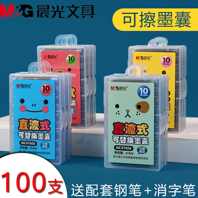 Morning light boxed ink sacks 100 pens 3 4mm caliber replaceable erasable pure blue elementary students 3rd grade special ink blue just refill universal child practice blue black ink ink bold crystal blue