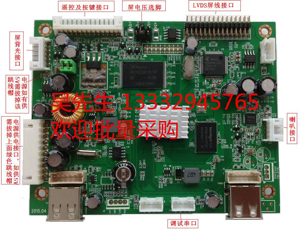 LCD advertising machine decoding drive motherboard horizontal and vertical adjustable with storage automatic split screen seamless switching serial port protocol