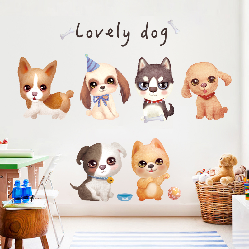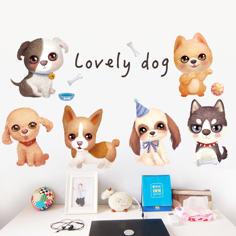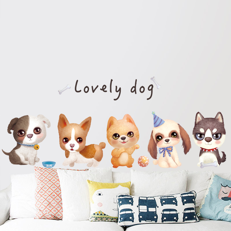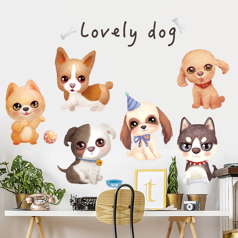 Cute puppy wall decoration stickers bedroom room bedside warm creative wall wall stickers self-adhesive wallpaper stickers