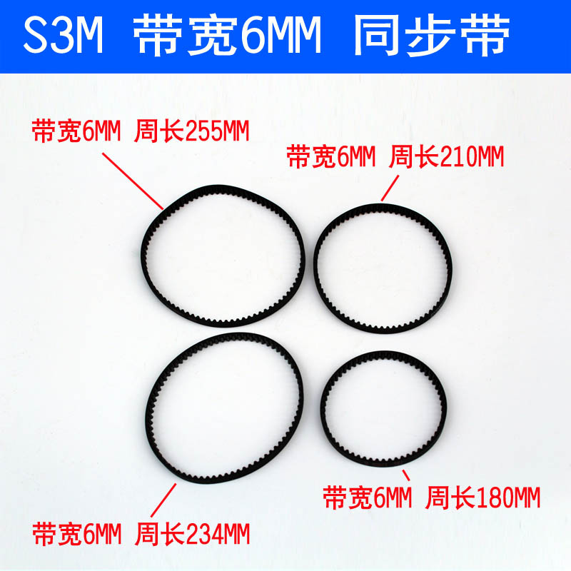 s3m timing belt Rubber belt 6mm wide drive belt Gear drive belt 180mm219mm234mm255mm
