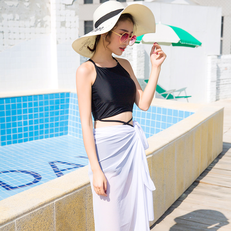 Split strap small chest push-up swimsuit women's Korean hot spring conservative belly cover three-piece set small fragrant wind thin swimsuit