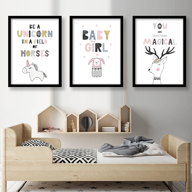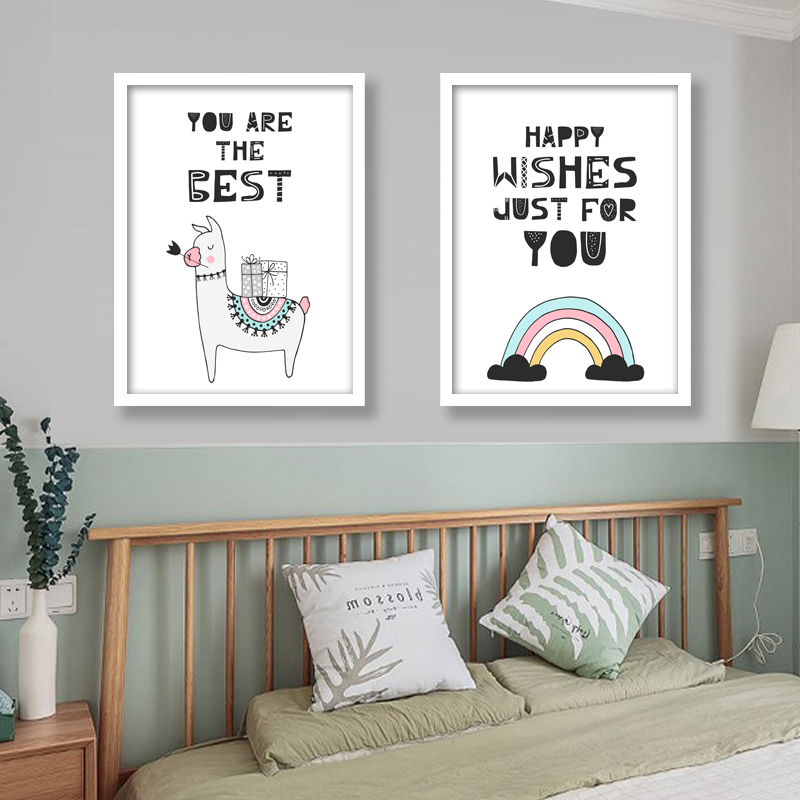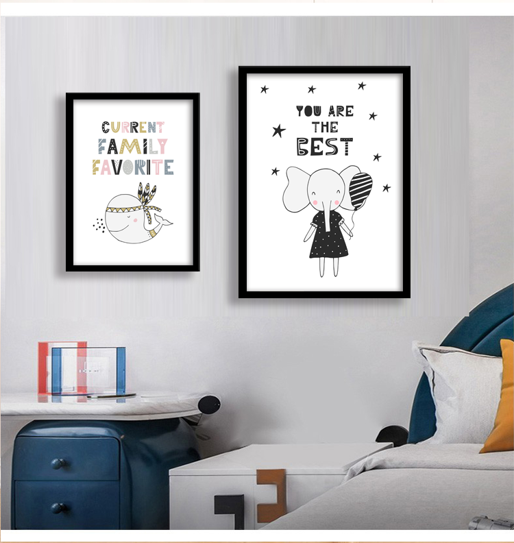 Small fresh children's room painting ins modern living room mural cartoon animal Nordic style bedroom bedside decoration painting