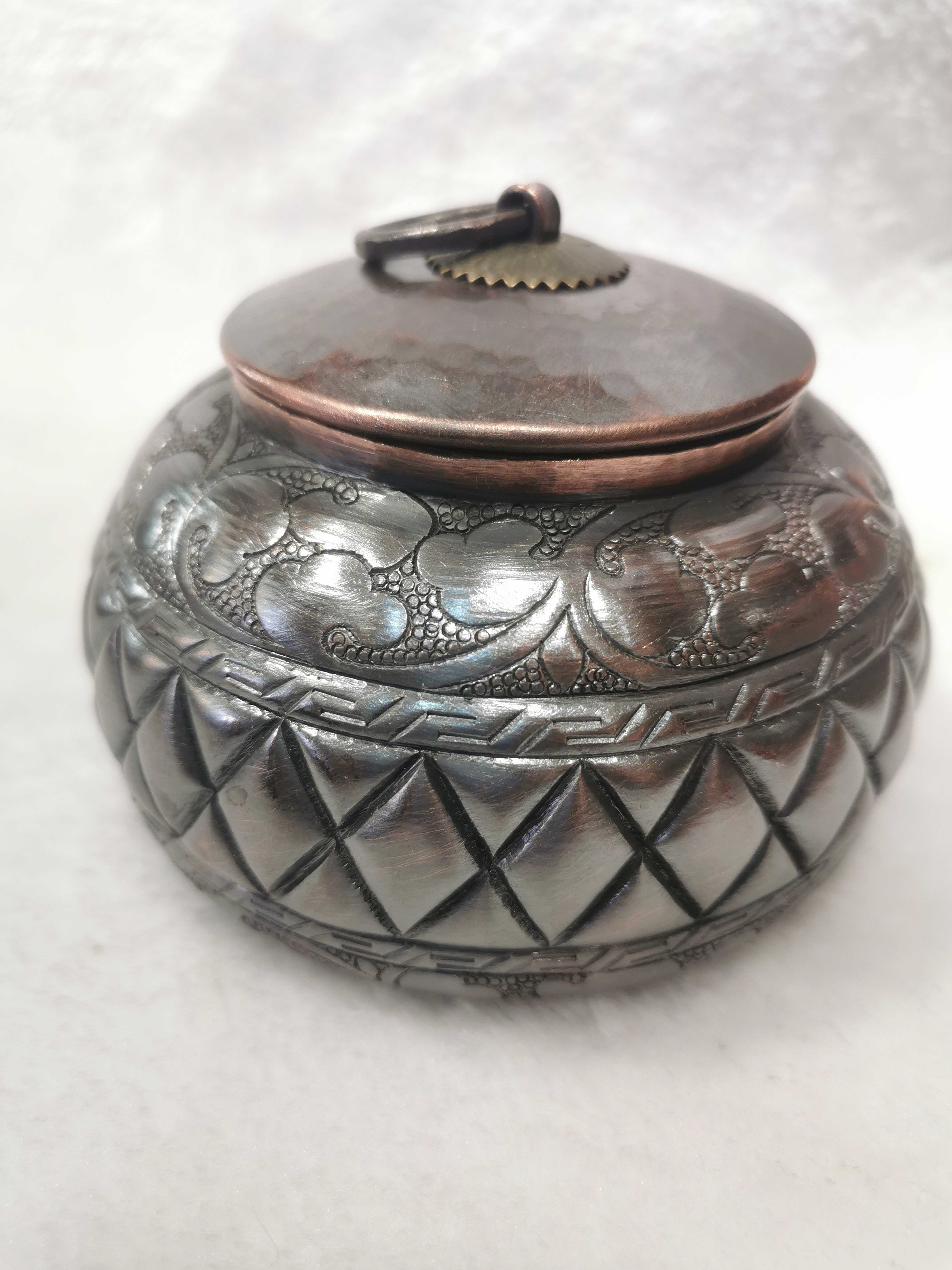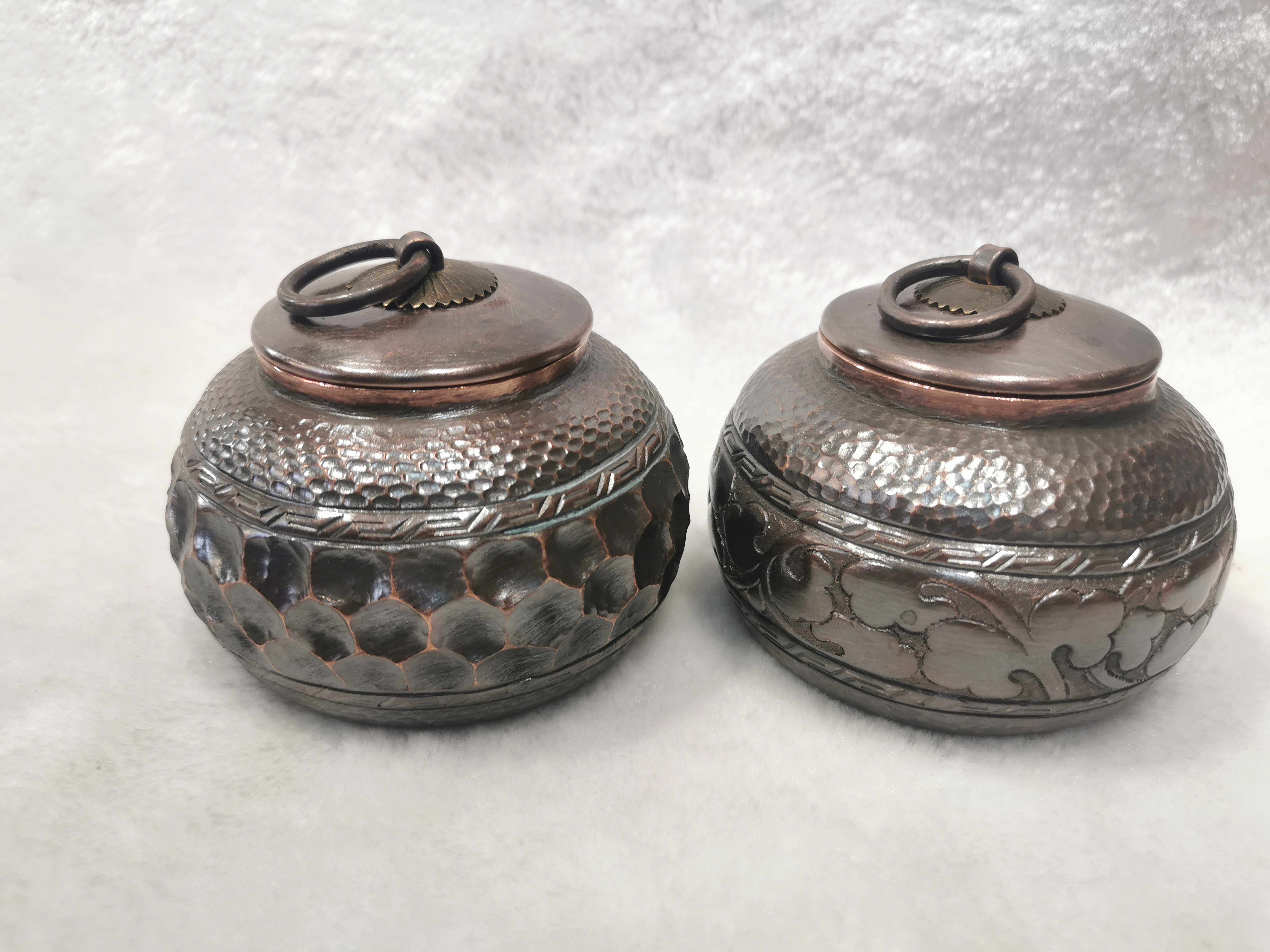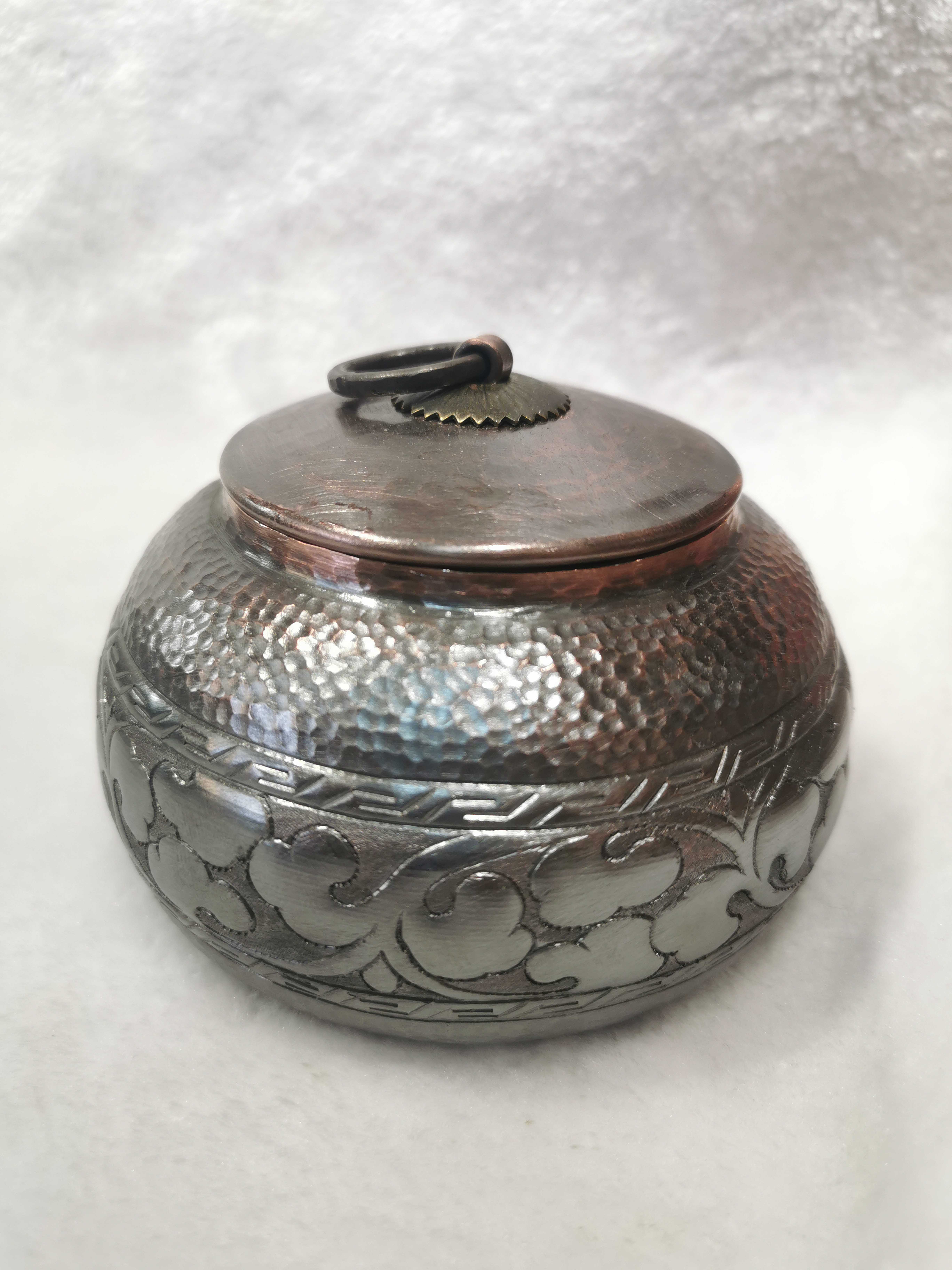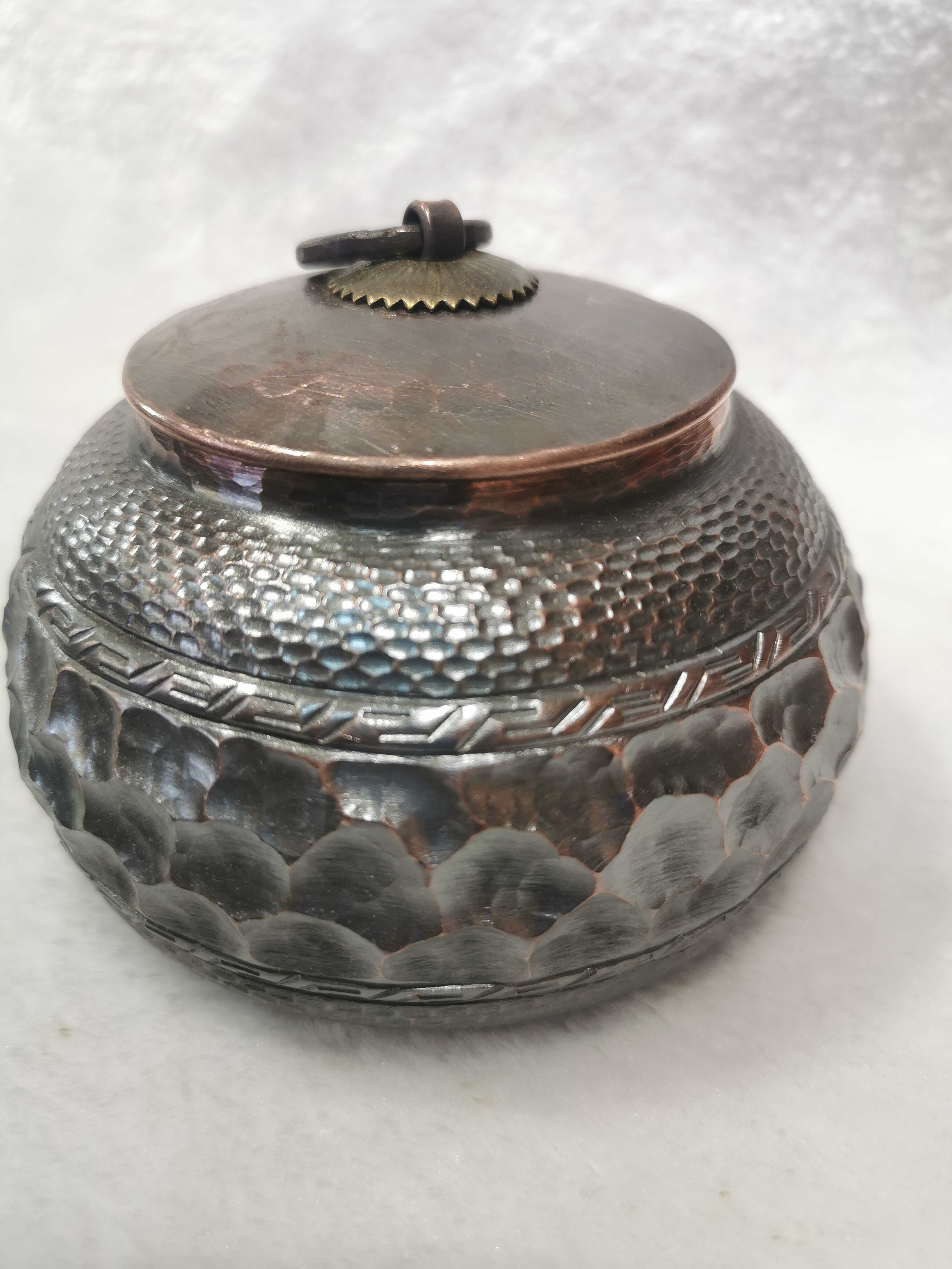Pure leaves new old Jun Shan Nou Ancient Large Porcelain Bottle Tea Bag paper cans hand copper tool