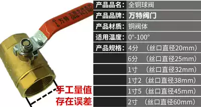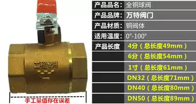Household tap water switch water valve high temperature resistant brass wante valve 4 points copper ball valve thickened inner and outer wire 6 points 1