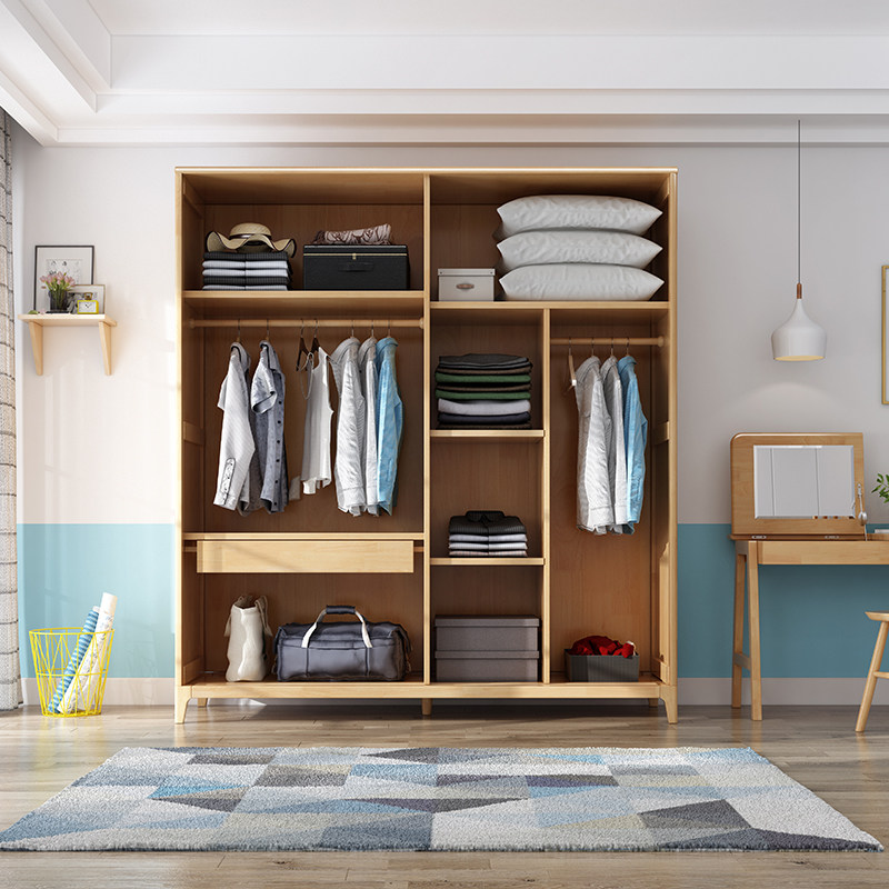 Nordic Japanese all solid wood wardrobe large sliding two doors small family economy type modern simple log clothing integrated cabinet bedroom