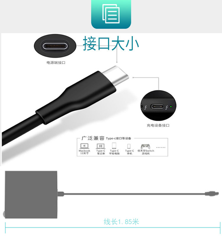 Suitable for Apple computer charger MacBookairpro29W 61W TYPE-C Huawei charging line 65W