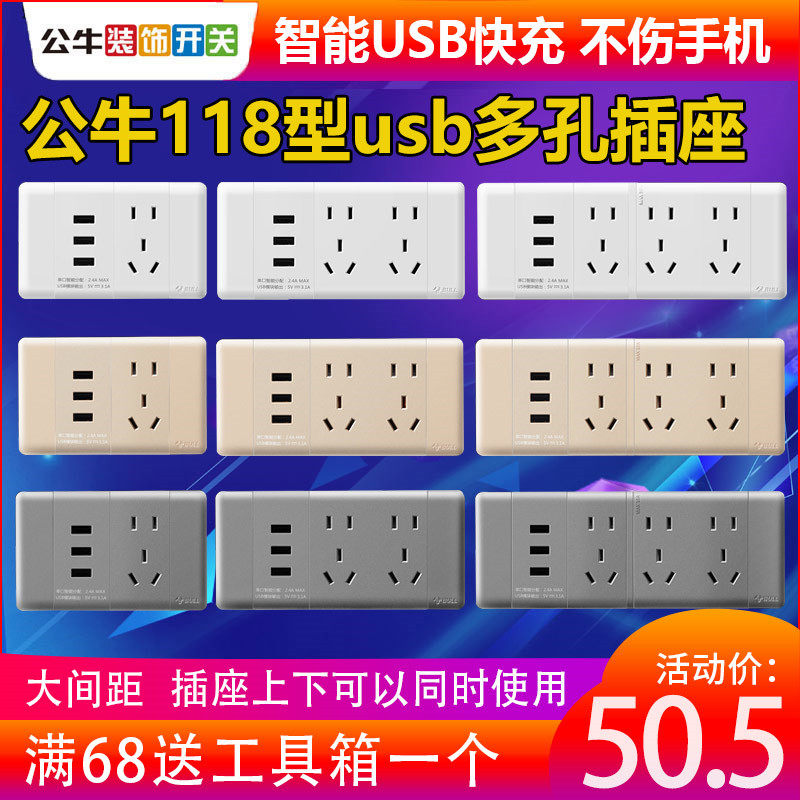 Multi-function socket with usb charging 118 type bull concealed household wall rectangular free combination panel
