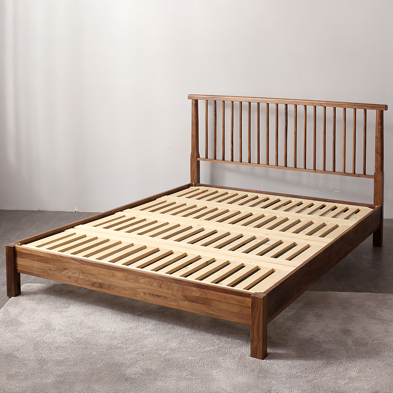 Three ears Nordic full solid wood double bed imported black walnut master bedroom king bed oak simple solid wood Windsor bed