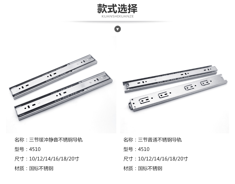 10 inch 25cm stainless steel ordinary three-fold rail 12 inch 30cm stainless steel ordinary three-fold rail 14 inch 35cm stainless steel ordinary three-fold rail