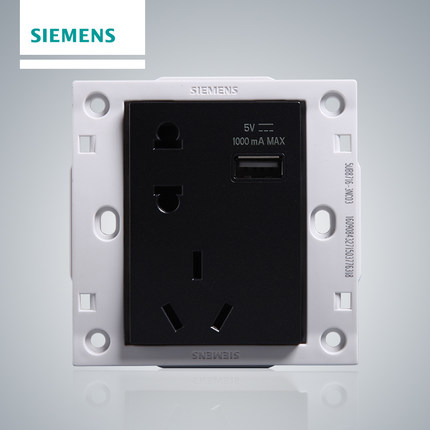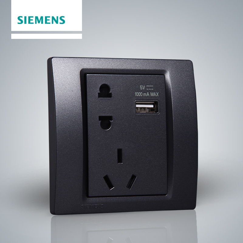 Siemens Hearmove Metal Black 10A5 Five Holes With USB Socket Wall Panel Five Holes USB Socket