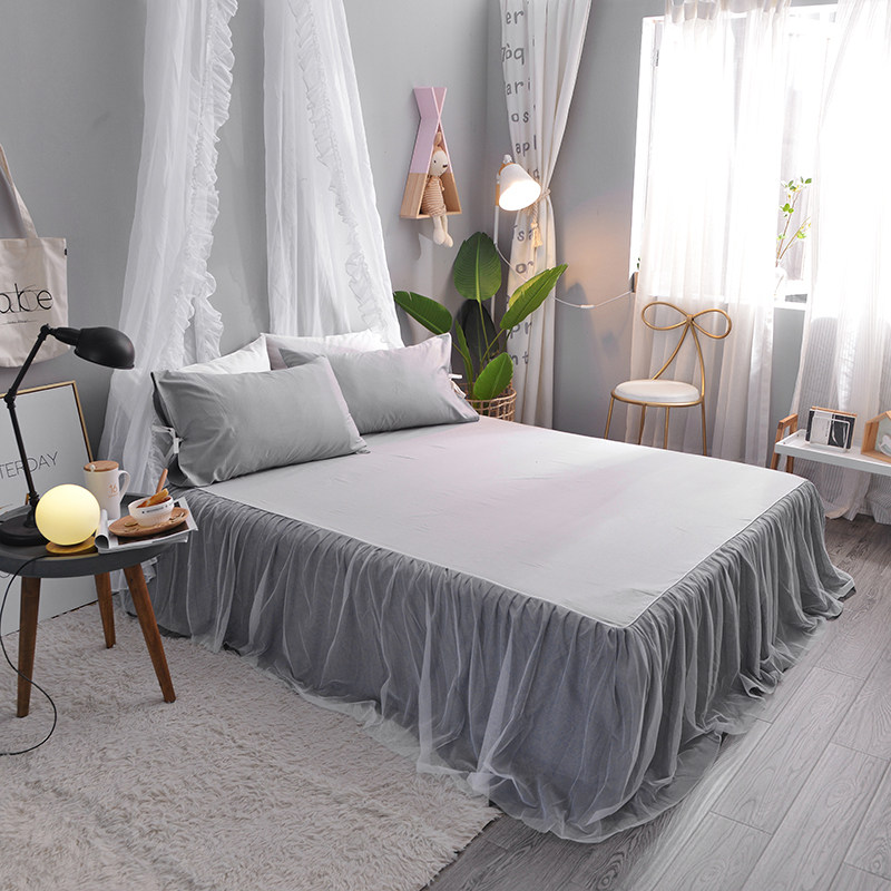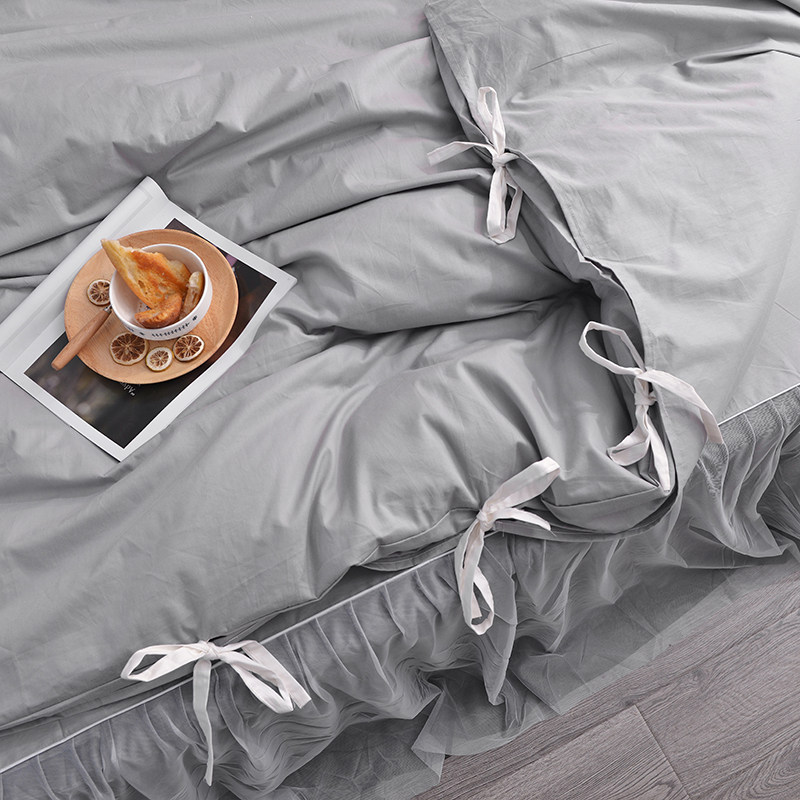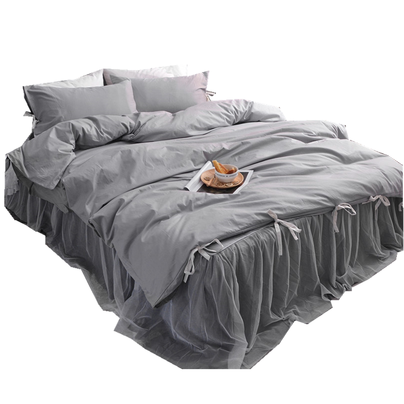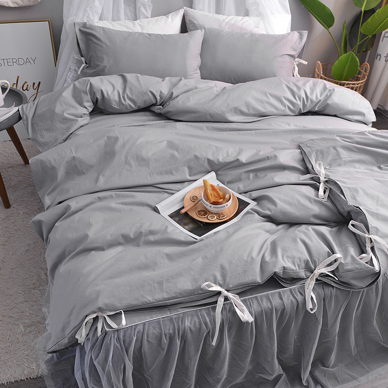 Korean lace lace lace all cotton - gray princess breeze skirt four pieces are set for pure cotton 1 8m bed
