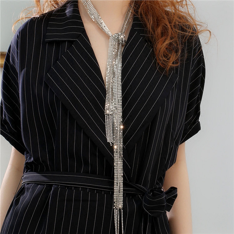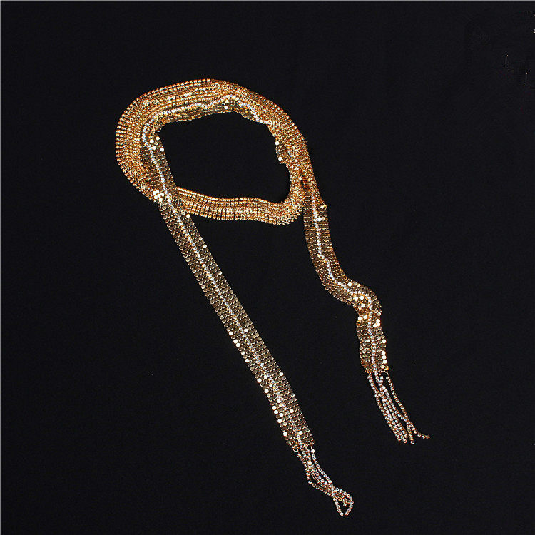 European and American big brand shiny metal disc long chain neck chain fashion personality rhinestone tassel neck chain wide necklace accessories