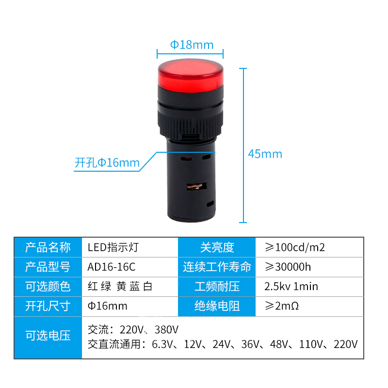 LED signal light power LED AD16-16C 12V 24V 220V380V 16MM red green yellowland white